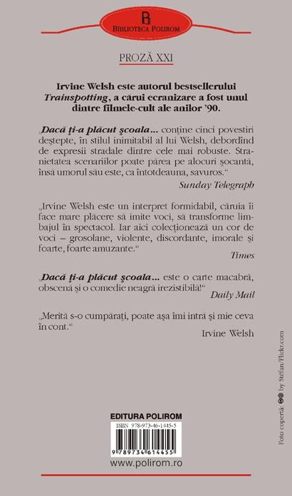 „Daca ti-a placut scoala... contine cinci povestiri destepte, in stilul inimitabil al lui Welsh, debordind de expresii stradale dintre cele mai robuste. Stranietatea scenariilor poate parea pe alocuri socanta, insa umorul sau este, ca intotdeauna, savuros.” (Sunday Telegraph)
