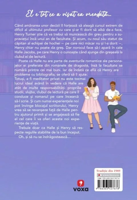 Când amânarea unor decizii îl forțează să aleagă cursul extrem de dificil al ultimului profesor cu care și-ar fi dorit să aibă de-a face, Henry Turner știe că va trebui să muncească din greu pentru a supraviețui încă unui an de facultate. Și acum, cu noul său statut de căpitan al echipei de hochei - pe care nici măcar nu și l-a dorit -, Henry chiar nu poate da greș. Dar norocul face să-i apară în cale Halle Jacobs, pe care Henry o cunoaște când ajunge din greșeală la clubul ei de lectură.
