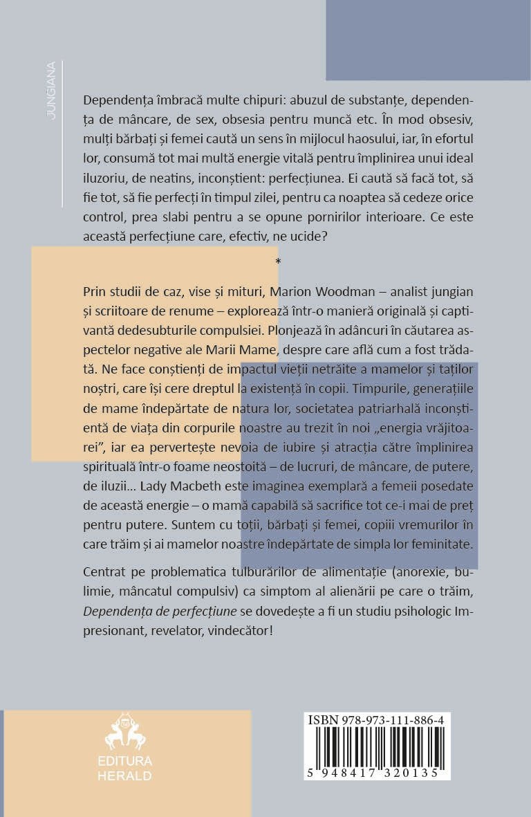 Centrat pe problematica tulburarilor de alimentatie (anorexie, bulimie, mancatul compulsiv) ca simptom al alienarii pe care o traim, Dependenta de perfectiune se dovedeste a fi un studiu psihologic Impresionant, revelator, vindecator!