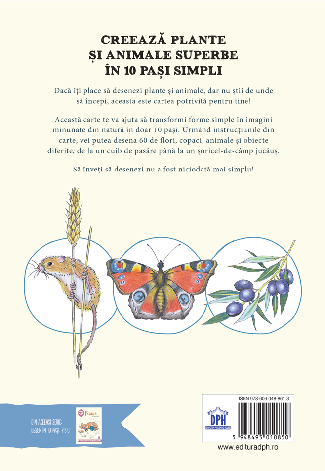 „Desen în 10 pași. Natură” este un ghid creativ și prietenos, potrivit pentru oricine dorește să descopere plăcerea desenului. Este o resursă excelentă pentru ore de arte, ateliere, dar și pentru activități relaxante în familie.