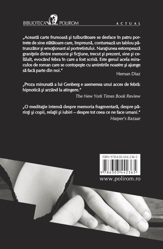 „Această carte frumoasă şi tulburătoare se desface în patru portrete de sine stătătoare care, împreună, conturează un tablou pătrunzător şi emoţionant al portretistului. Naraţiunea estompează graniţele dintre memorie şi ficţiune, trecut şi prezent, sine şi celălalt, evocând febra în care a fost scrisă.
