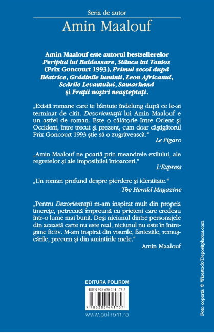 „Există romane care te bântuie îndelung după ce le-ai terminat de citit. Dezorientații lui Amin Maalouf e un astfel de roman. Este o călătorie între Orient și Occident, între trecut și prezent, cum doar câștigătorul Prix Goncourt 1993 știe să o zugrăvească.” (Le Figaro)