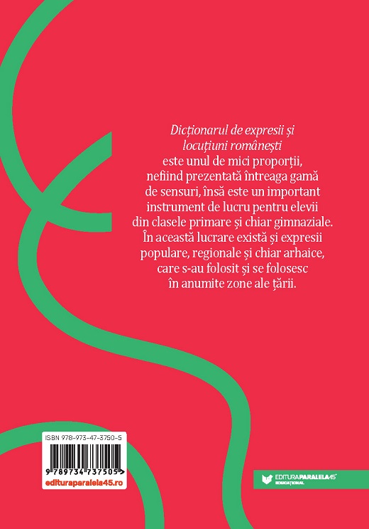 Dicționarul de expresii și locuțiuni românești este unul de mici proporții, nefiind prezentată întreaga gamă de sensuri, însă este un important instrument de lucru pentru elevii din clasele primare și chiar gimnaziale. În această lucrare există și expresii populare, regionale și chiar arhaice, care s-au folosit și se folosesc în anumite zone ale țării.