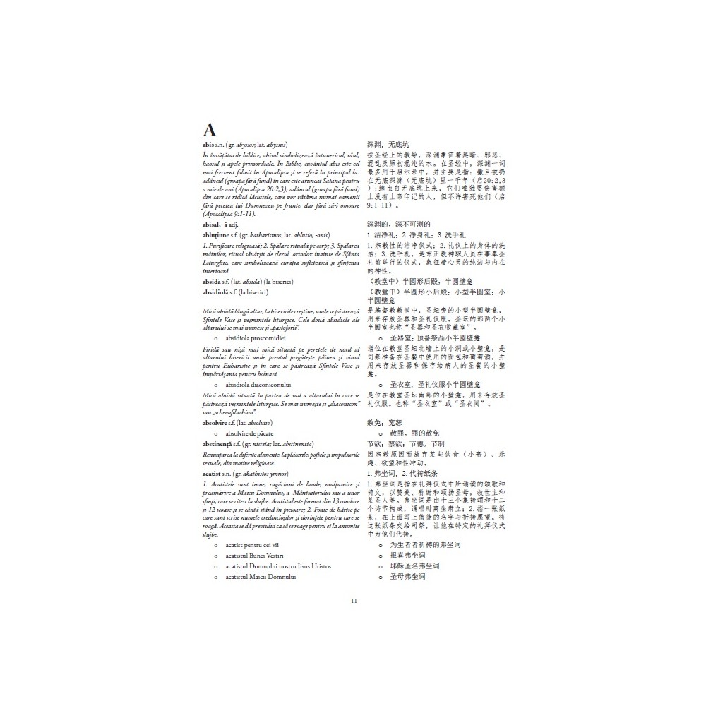 Dicționarul ortodox român-chinez este consacrat termenilor religioși ortodocși, fiind rodul unei munci personale, desfășurată cu perseverență, răbdare și pasiune de-a lungul unei perioade de aproape 15 ani.