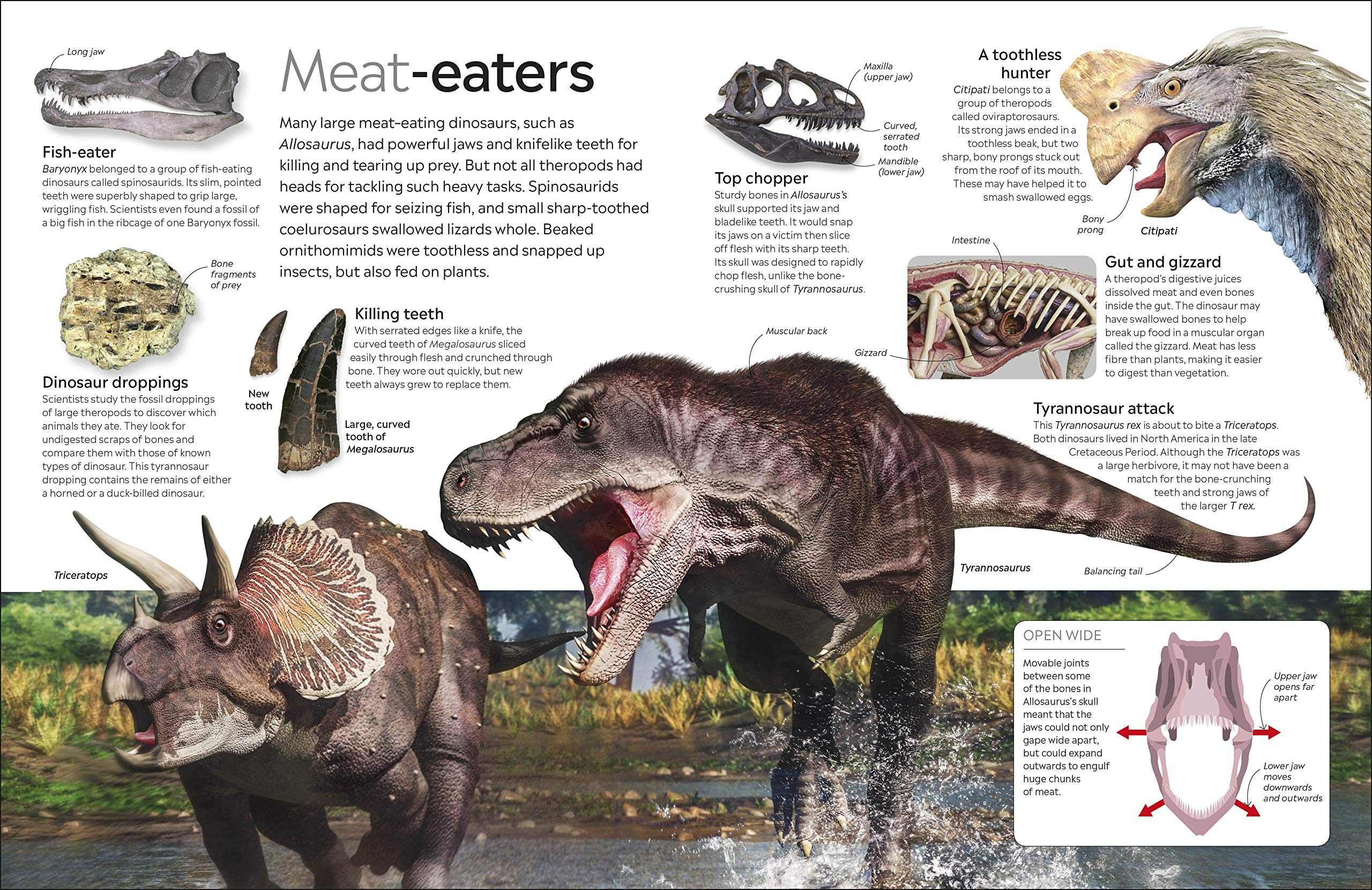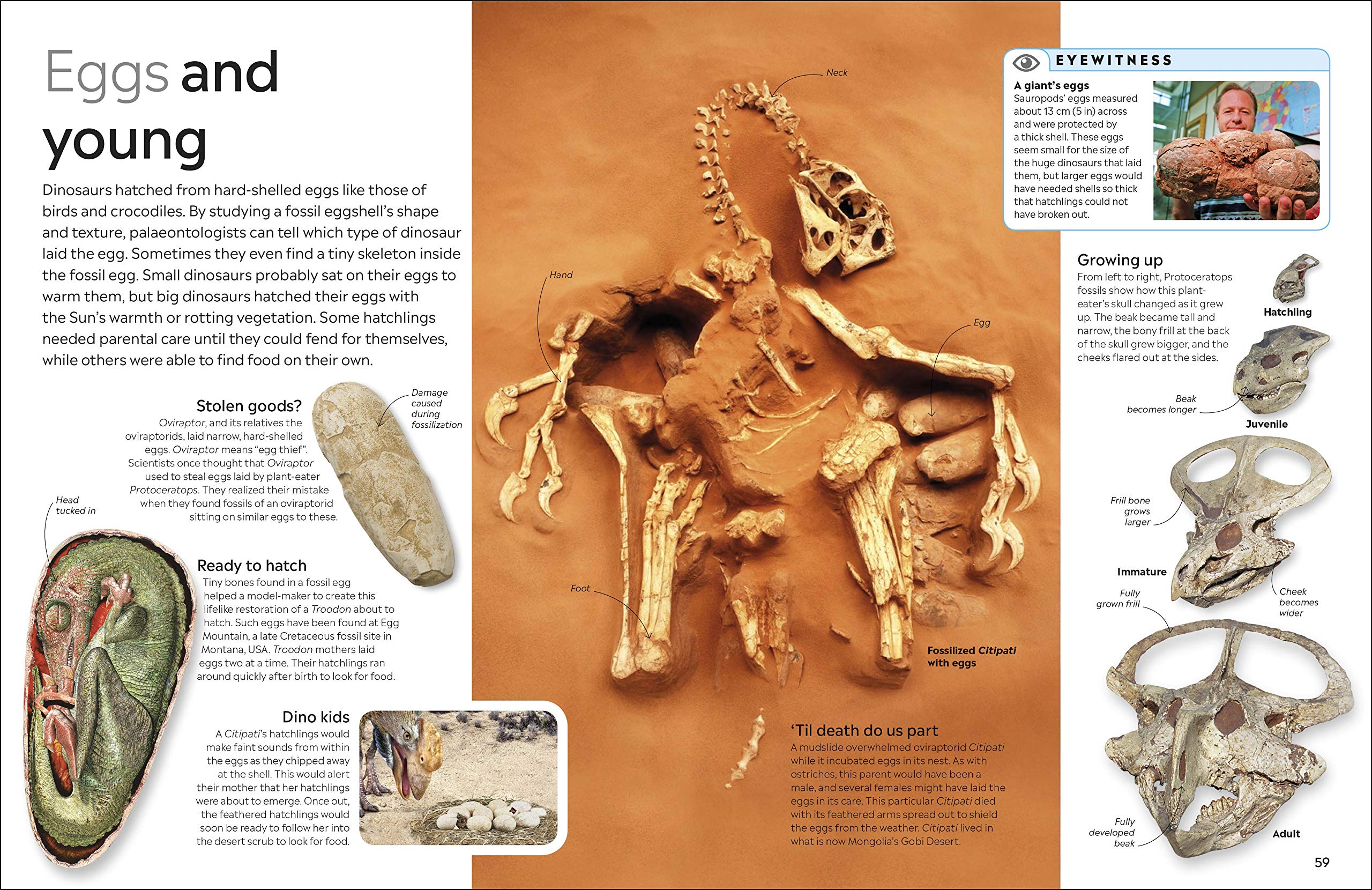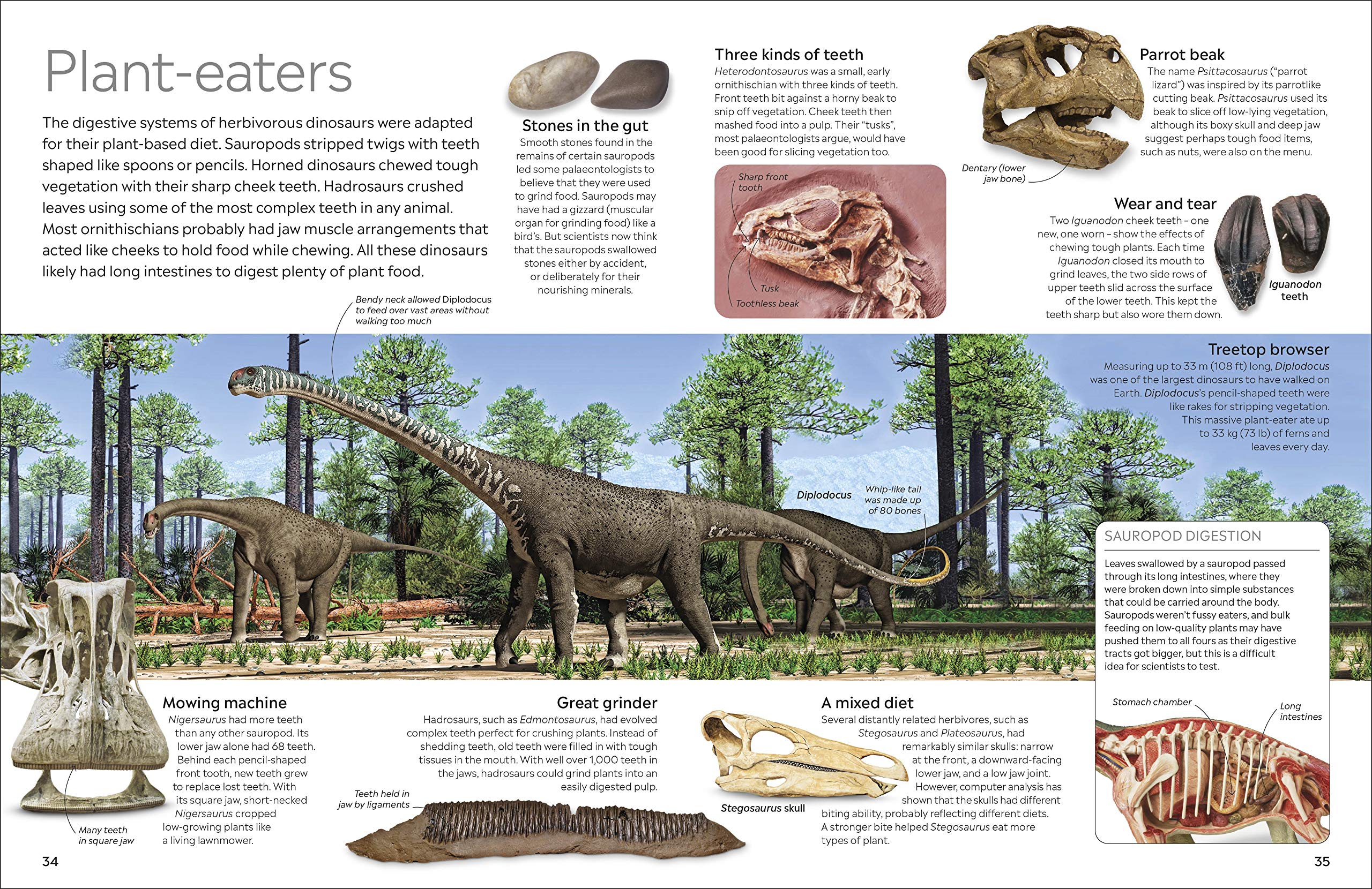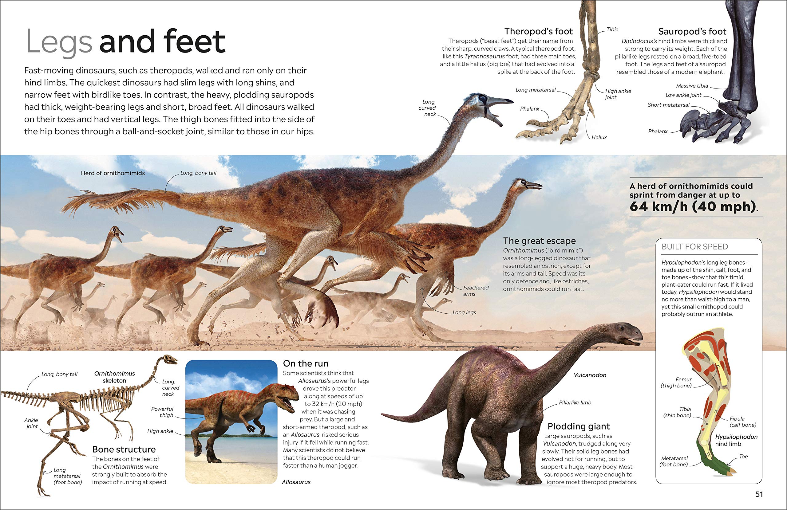 DK Eyewitness Dinosaur looks closely at different types of dinosaurs and their body parts, diets, senses, evolution, and more. Did you know that a herd of Ornithomimids could sprint from danger at a speed of up to 64 km/h (40mph)? Or that the long-necked Diplodocus was one of the largest dinosaurs to have ever walked on Earth, measuring up to 33m (108 ft).