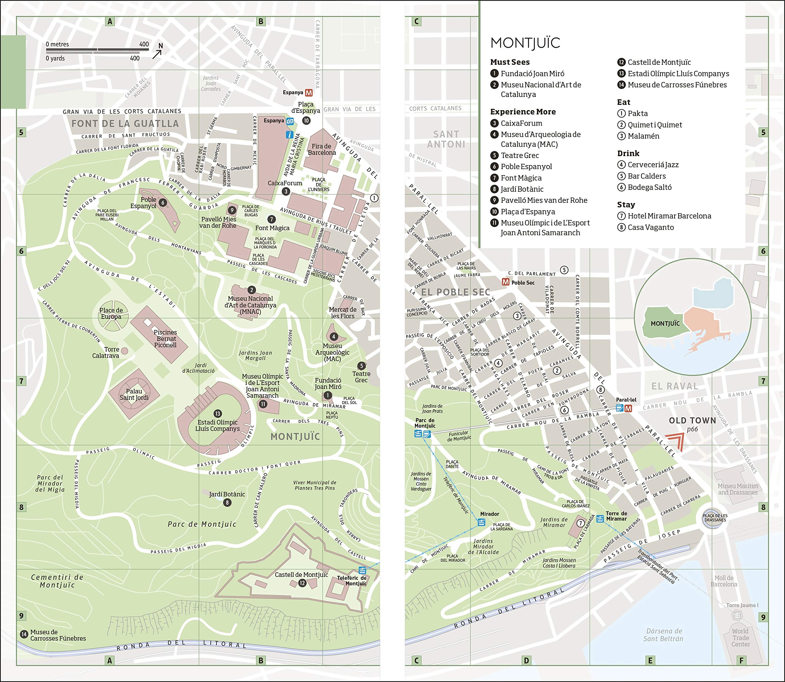 - colour-coded chapters to every part of Barcelona and Catalonia, from Old town to beyond the centre, Eixample to Montjuïc