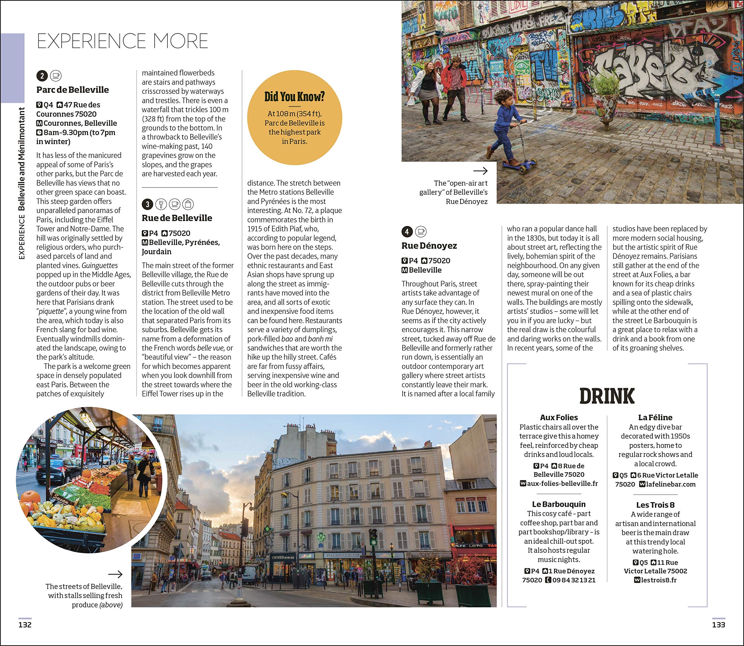 - Covers Ile de la Cite and Ile St-Louis; the Marais; Bastille and Oberkampf; Republique and Canal St-Martin; Belleville and Menilmontant; La Villette; Montmartre and Pigalle; Opera and Grands Boulevards; Louvre and Les Halles; Eiffel Tower and Invalides; Champs-Elysees and Chaillot; St-Germain-des-Pres; Latin Quarter; Jardin des Plantes and Place d'Italie; Montparnasse and Jardin du Luxembourg; plus sights beyond the city.