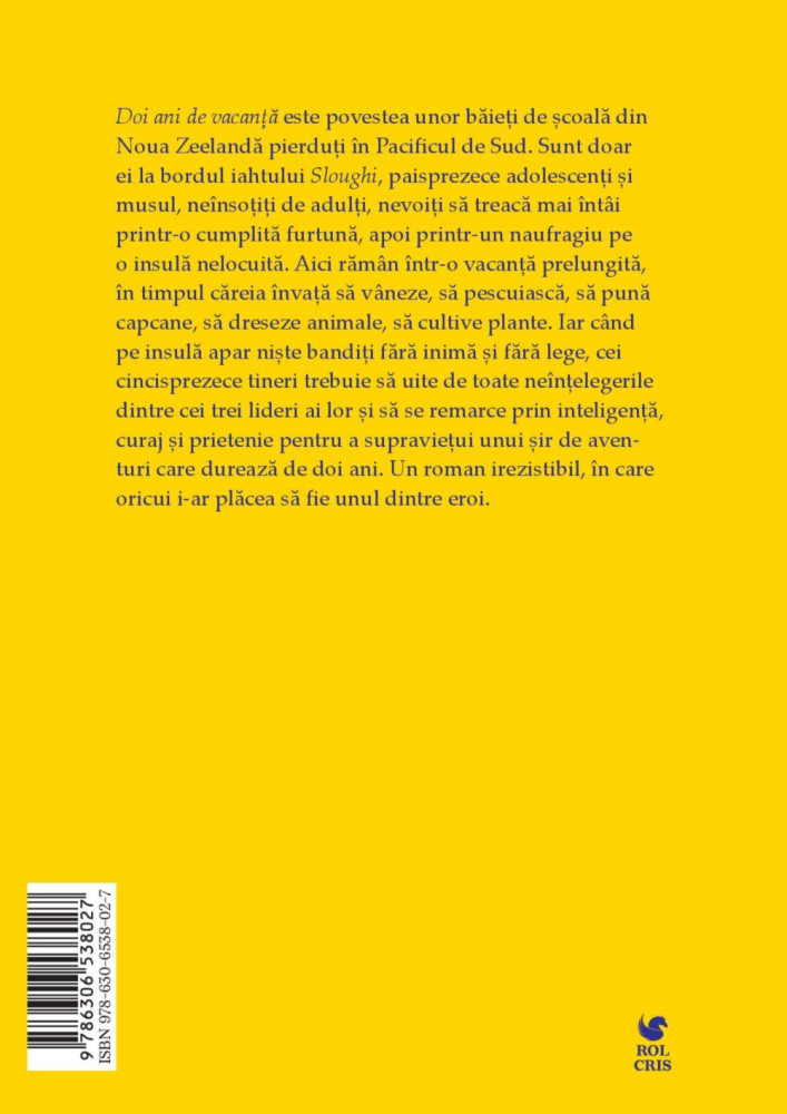 Aici rămân într-o vacanță prelungită, în timpul căreia învață să vâneze, să pescuiască, să pună capcane, să dreseze animale, să cultive plante. Iar când pe insulă apar niște bandiți fără inimă și fără lege, cei cincisprezece tineri trebuie să uite de toate neînțelegerile dintre cei trei lideri ai lor și să se remarce prin inteligență, curaj și prietenie pentru a supraviețui unui șir de aventuri care durează de doi ani. Un roman irezistibil, în care oricui i-ar plăcea să fie unul dintre eroi.