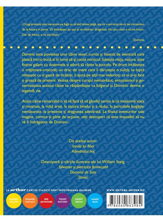 Dominic este povestea unui câine vesel, curios și însetat de aventură care pleacă într-o bună zi în lume să-și caute norocul. Iubește viața, natura, este foarte galant cu doamnele și adoră să cânte la piccolo.