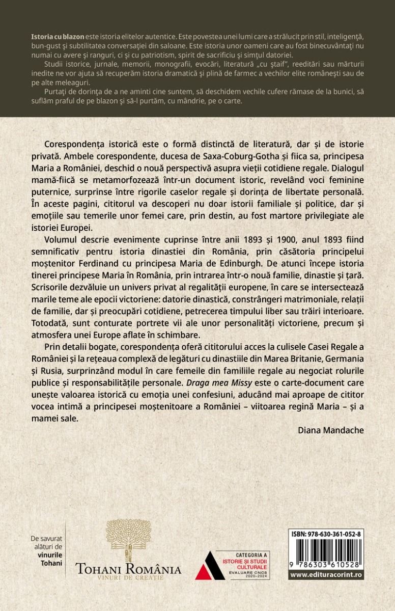 Corespondența dintre mamă și fiică este depozitată la Arhivele Naționale ale României și vede astăzi lumina tiparului pentru prima dată în România. Conține epistole sugestive, pline de impresii personale, care surprind viața cotidiană, evenimente sociale, precum și dramele sau transformările care au loc la casele regale europene în ultima parte a epocii victoriene.