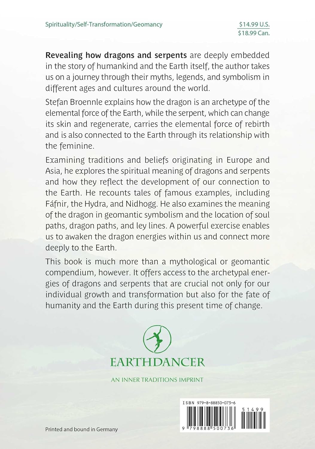 Revealing how dragons and serpents are deeply embedded in the story of humankind and the Earth itself, from prehistory to the present, Stefan Broennle takes us on a journey through the myths, legends, symbols, and geomantic powers of dragons in different cultures around the world. He shows how the ancient image of the dragon and the serpent are closely connected with each other. He explains how dragons are archetypes of the elemental force of the Earth, while the serpent, which can change its skin and regenerate, carries the elemental force of rebirth and is also connected to the Earth through its relationship with the feminine. Looking at lore from Europe and Asia, he shows how in Christian cultures, dragons and serpents were often connected to dark and evil forces whereas in Asia the dragon is considered the bearer of culture, the founder of countries, or even the primal father of the people.