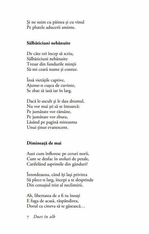 În prezentul volum, poeta imaginează dialogul liric al sufletului cu nevăzutul, invitându-și cititorii să urce împreună cu ea treptele iubirii crescătoare.