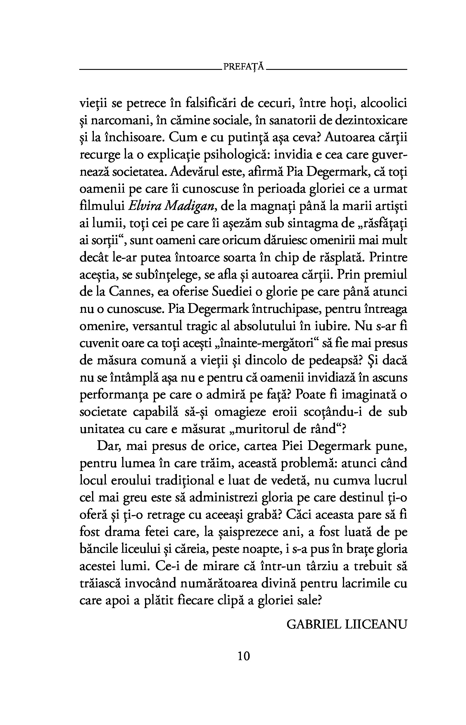 „Mai presus de orice, cartea Piei Degermark pune, pentru lumea în care trăim, această problemă: atunci când locul eroului tradițional e luat de vedetă, nu cumva lucrul cel mai greu este să administrezi gloria pe care destinul ți-o oferă și ți-o retrage cu aceeași grabă?