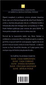 Pornind de la insemnarile tatalui sau, Brian Herbert a colaborat cu romancierul Kevin J. Anderson pentru a asterne pe hirtie un episod inedit din vasta epopee, ingaduindu-ne sa privim in trecutul acestui stralucit univers fictional... cu decenii inainte ca Paul Muad'Dib Atreides sa fi pasit pentru intiia oara pe nisipurile fierbinti ale planetei Arrakis... in CASA ATREIDES, batrinul imparat Elrood al IX-lea stapineste Tronul Leului de Aur, domnind autoritar asupra intregului univers cunoscut, in vreme ce fiul sau Shaddam unelteste impotriva sa, arzind de nerabdare sa ii ia locul. Ordinul cvasi-religios al surorilor Bene Gesserit urmeaza cu strictete un plan eugenic secret, menit sa duca la nasterea unui copil-zeu, atotputernicul Kwisatz Haderach. Pe planeta desert Arrakis, planetologul imperial Kynes incearca sa patrunda secretele mirodeniei, substanta cea mai pretioasa din intregul Imperiu si unica resursa a planetei pe care bastinasii, temutii razboinici fremeni, o numesc Dune. in tot acest timp, o familie nobiliara minora, Casa Atreides, alege sa urmeze calea primejdioasa a onoarei, stirnind ura neimpacata a rivalilor din Casa Harkonnen si declansind o inlantuire de evenimente ce vor schimba cursul istoriei.
