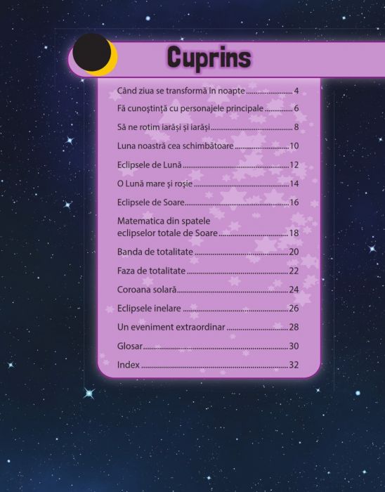 Această carte le explică copiilor, clar și pe înțelesul lor, ce sunt eclipsele, cum se formează și cum le-au studiat oamenii de-a lungul timpului. Ilustrațiile extraordinare și informațiile nemaipomenite le vor dezvălui tot ce este mai fascinant și uimitor despre ECLIPSE.