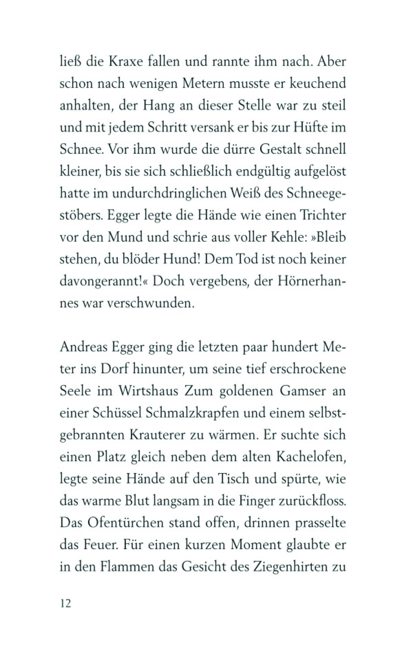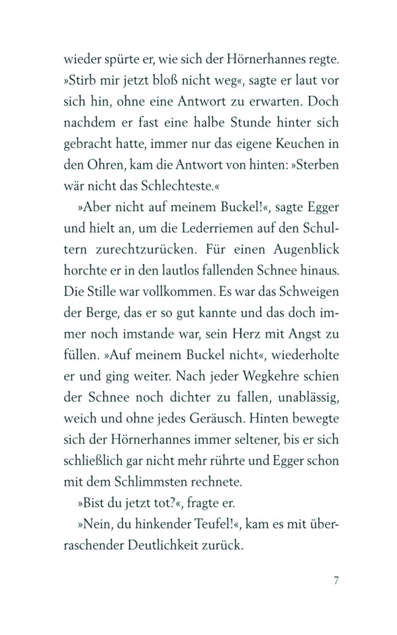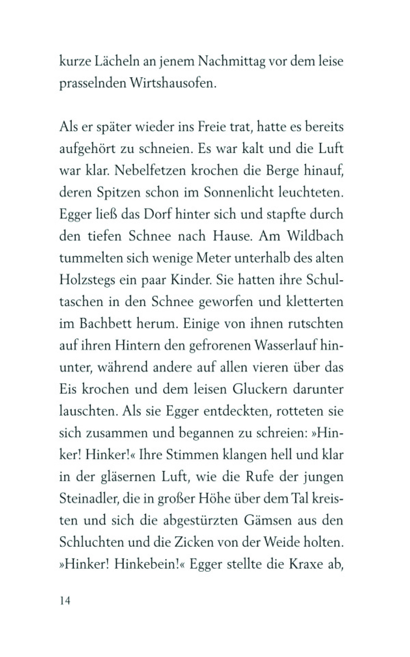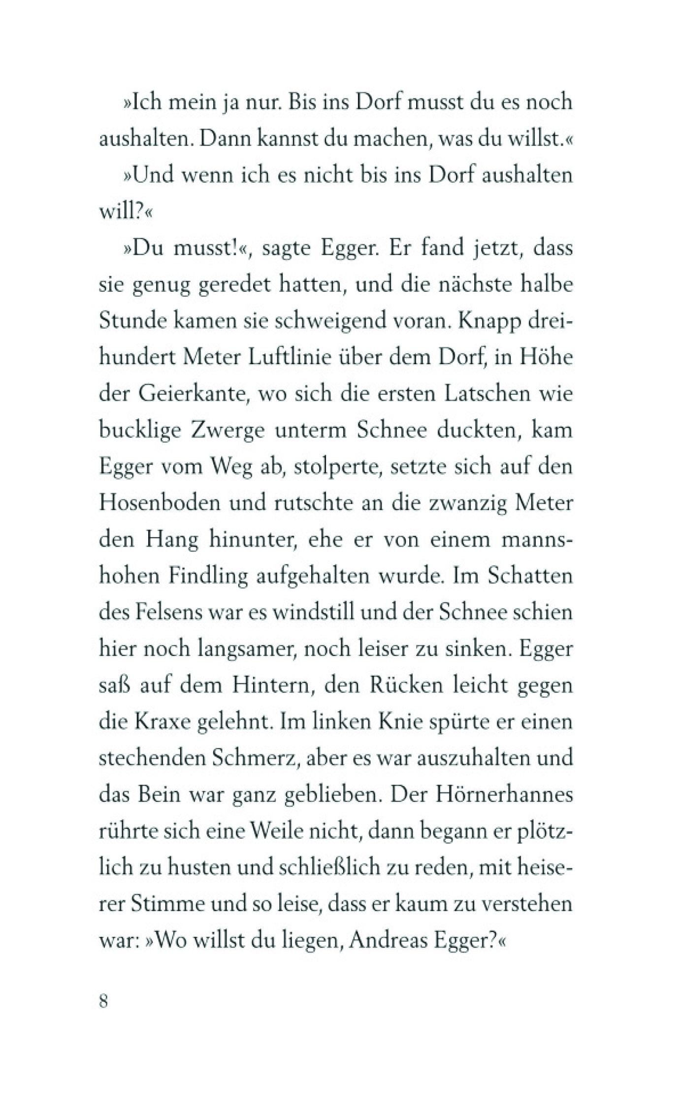 Als Andreas Egger in das Tal kommt, in dem er sein Leben verbringen wird, ist er vier Jahre alt, ungefähr - so genau weiß das keiner. Er wächst zu einem gestandenen Hilfsknecht heran und schließt sich als junger Mann einem Arbeitstrupp an, der eine der ersten Bergbahnen baut und mit der Elektrizität auch das Licht und den Lärm in das Tal bringt. Dann kommt der Tag, an dem Egger zum ersten Mal vor Marie steht, der Liebe seines Lebens, die er jedoch wieder verlieren wird. Erst viele Jahre später, als Egger seinen letzten Weg antritt, ist sie noch einmal bei ihm. Und er, über den die Zeit längst hinweggegangen ist, blickt mit Staunen auf die Jahre, die hinter ihm liegen.