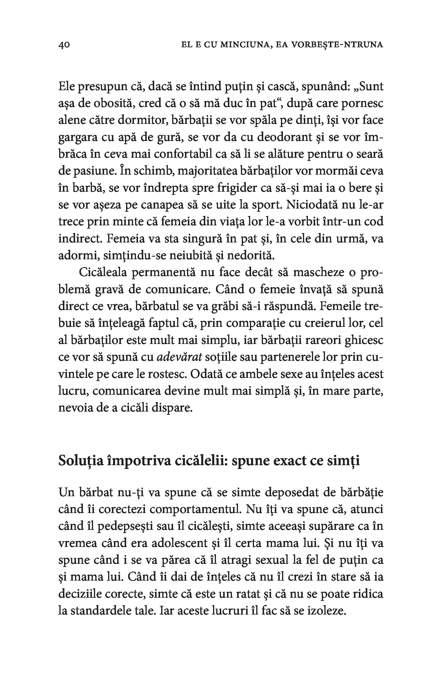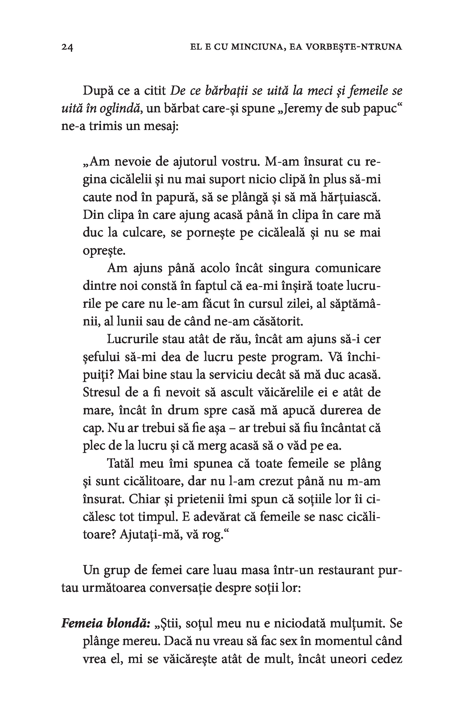 Acestea, și multe altele, sunt întrebările la care îți vor răspunde Allan și Barbara Pease, oferindu-ți, cu umor și într-un limbaj accesibil, soluții la îndemână pentru o mai bună comunicare cu partenerul.
