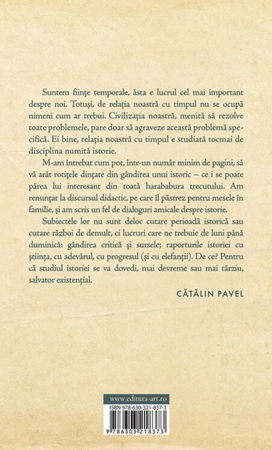 Este, mai degrabă, o istorie a istoriei – o poveste despre ce înseamnă această disciplină pentru oamenii zilelor noastre. Cu greu o veți putea lăsa din mână, pentru că anti-manualul lui Cătălin Pavel este, în fond, ce ar trebui să fie orice manual: o lectură revelatoare și palpitantă, de un umor savuros.” -- Liviu Papadima