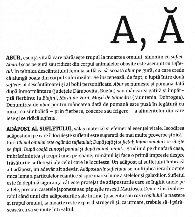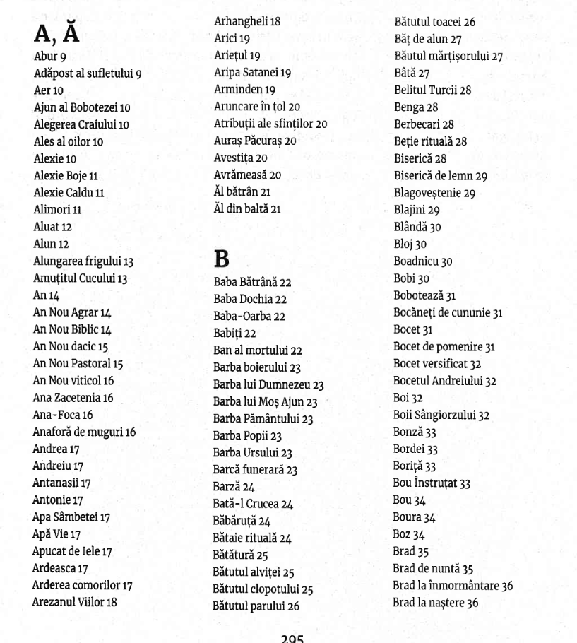 Prima lucrare in acest domeniu, acest volum cuprinde descrierea, semnificatia si repartitia geografica a peste 1000 de sarbatori, datini, credinte si reprezentari mitologice, descifrand enigme sacre ale spiritualitatii romanesti.