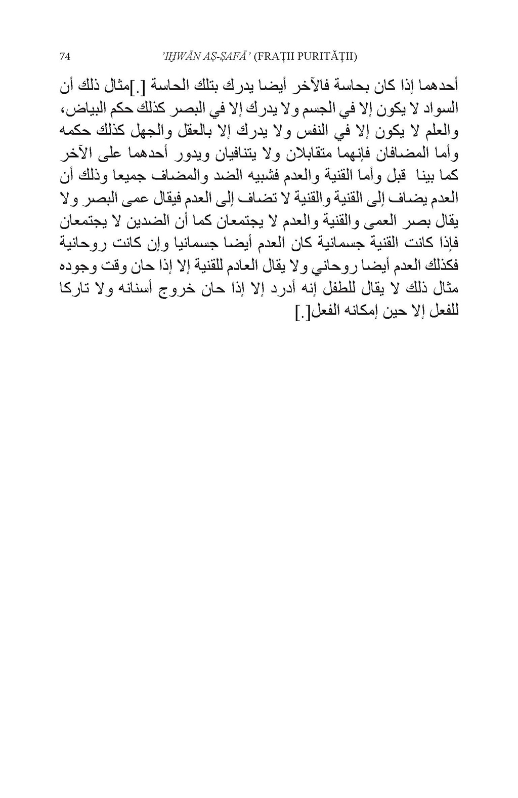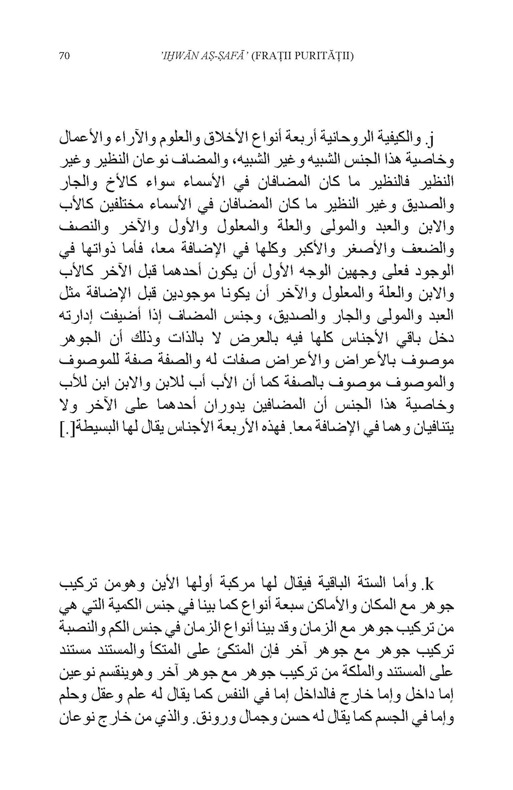 Grupul de erudiți cunoscut sub numele de „Frații Purității” a compus, în regiunea Baṣra, opera enciclopedică Rasāil („Epistole”), care însumează 52 de epistole și se divide în patru secțiuni, fiecare dintre ele avînd la bază principiul cunoașterii universale pentru descoperirea căruia se reunesc strategii de demonstrație specifice, corespondente cu ceea ce cultura latină occidentală a numit trivium și quadrivium.