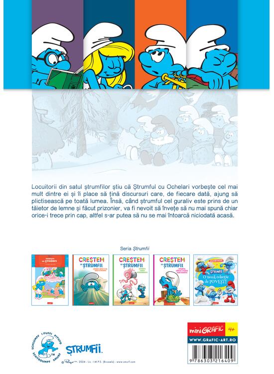 Locuitorii din satul ștrumfilor știu că Ștrumful cu Ochelari vorbește cel mai mult dintre ei și îi place să țină discursuri care, de fiecare dată, ajung să plictisească pe toată lumea. Însă, când ștrumful cel guraliv este prins de un tăietor de lemne și făcut prizonier, va fi nevoit să învețe să nu mai spună chiar orice-i trece prin cap, altfel s-ar putea să nu se mai întoarcă niciodată acasă.