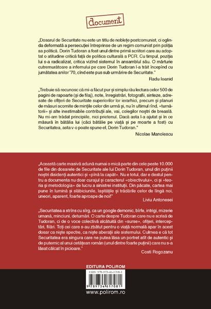 s-a radicalizat, critica vizind sistemul in ansamblul sau. O marturie cutremuratoare a infernului pe care Dorin Tudoran l-a trait incepind cu jumatatea anilor ’70, cind este pus sub urmarire de Securitate.” (Radu Ioanid)