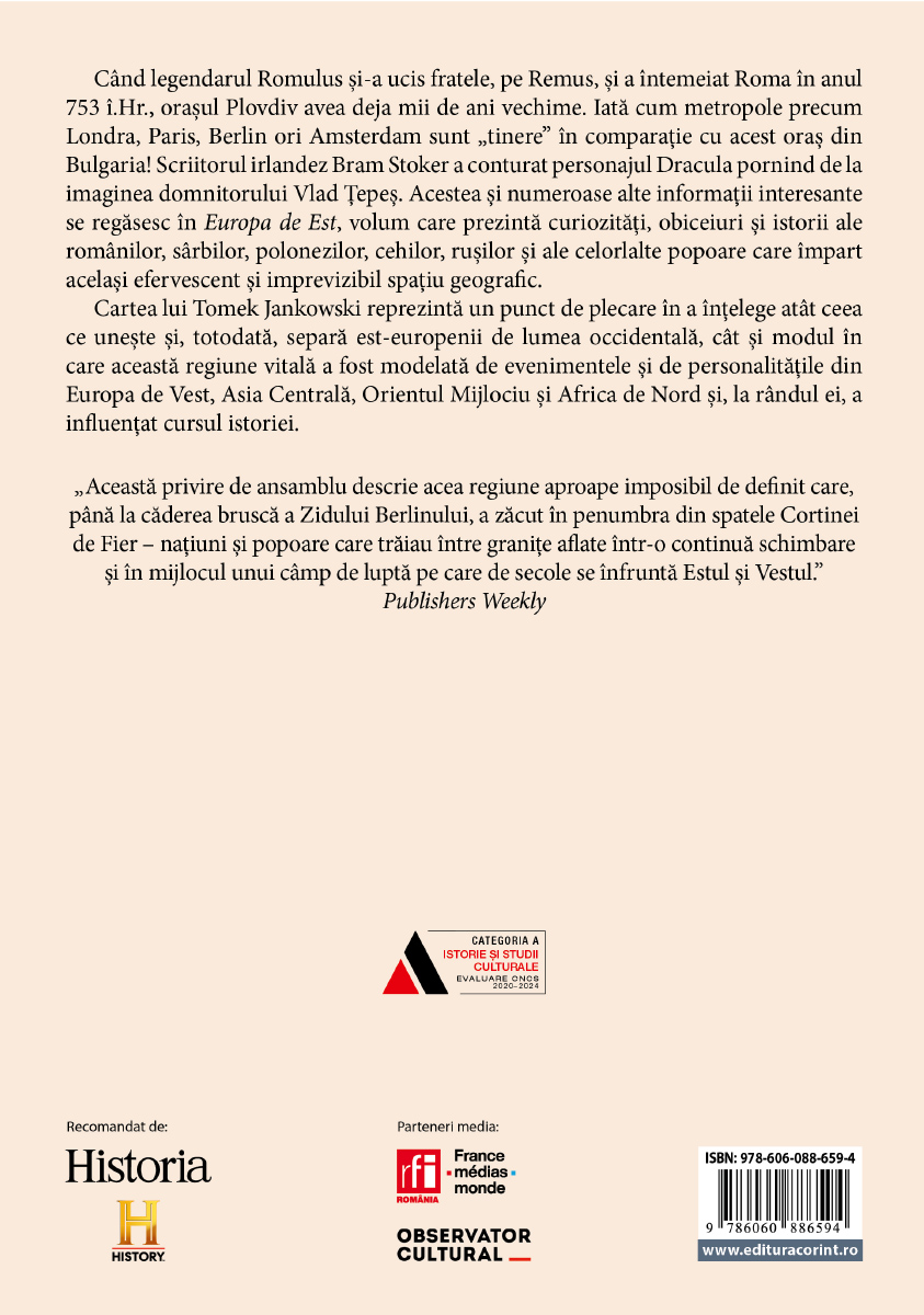 Cartea lui Tomek Jankowski reprezintă un punct de plecare în a înțelege atât ceea ce unește și, totodată, separă est-europenii de lumea occidentală, cât și modul în care această regiune vitală a fost modelată de evenimentele și de personalitățile din Europa de Vest, Asia Centrală, Orientul Mijlociu și Africa de Nord și, la rândul ei, a influențat cursul istoriei.