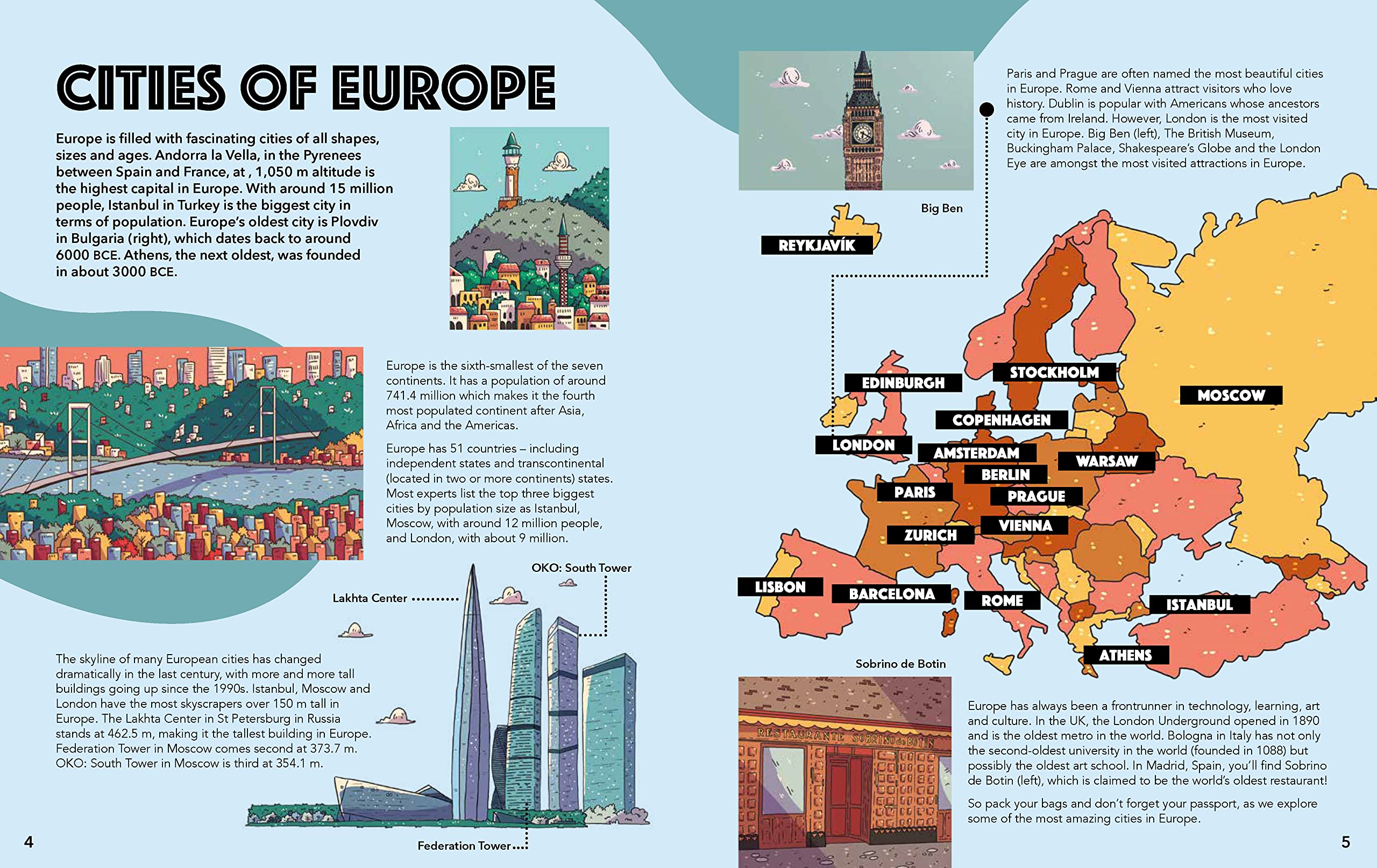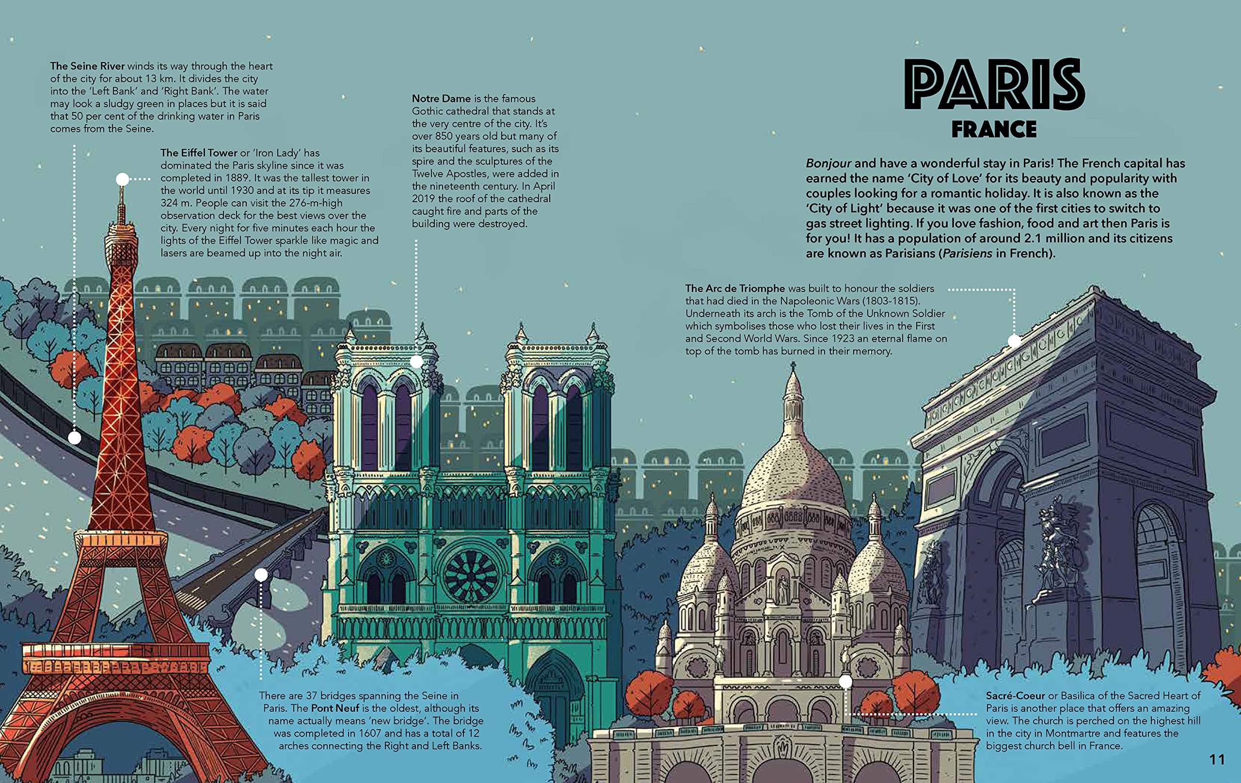 Cityscapes draw in the reader with facts about the iconic buildings that help to shape each city's unique identity. Data-packed pages give the essential details about each featured city, including where to go, what to do and things to eat on a visit, as well as information about the city's history.