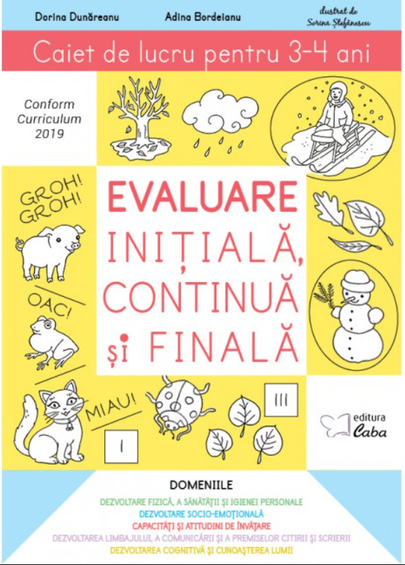Editura Caba va invita sa descoperiti caietul de lucru "Evaluare initiala, continua si finala pentru 3-4 ani", conform curriculum 2019.