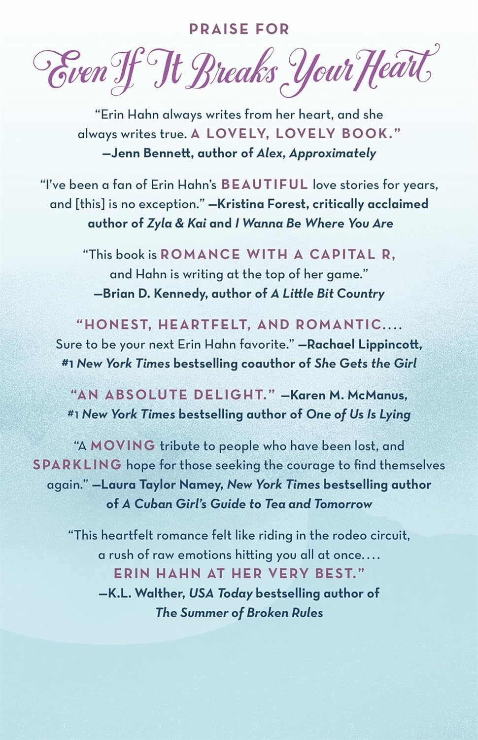 A heart-buckling ride of a romance by beloved author Erin Hahn, Even If It Breaks Your Heart is about two teens finding out that sometimes, the hardest part of discovering what you want is getting the courage to pursue it.