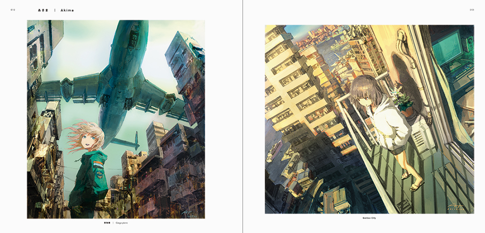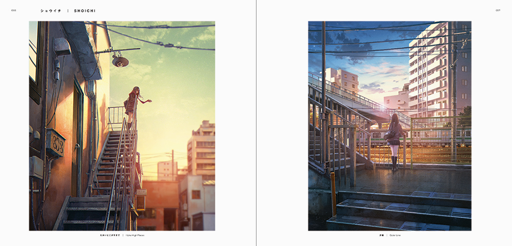 This first book is a collection of background artworks featuring familiar scenes from daily life: nostalgic townscapes, detailed cityscapes, intricate architecture, rooms that look like doll houses, etc. The illustrations are extremely realistic and detailed - almost like photographs - but at the same time give readers the sense that we are looking at images of a parallel world.