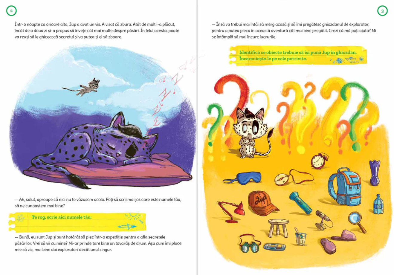 Jup vrea să zboare! Dar mai întâi trebuie să afle o mulţime de lucruri despre păsări.