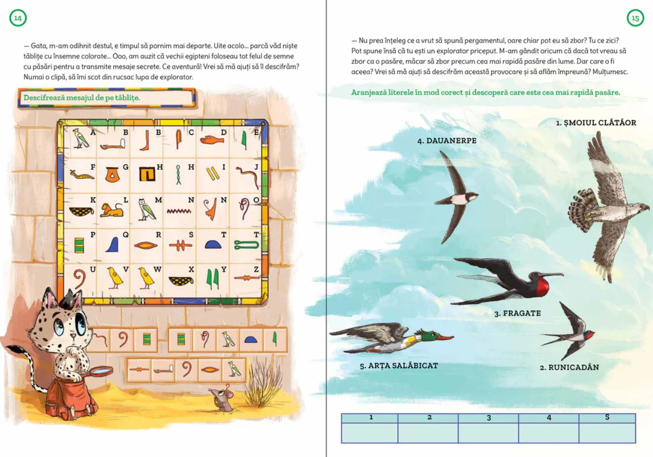 Găseşti multe jocuri, enigme, provocări şi alte distracţii în acest caiet.