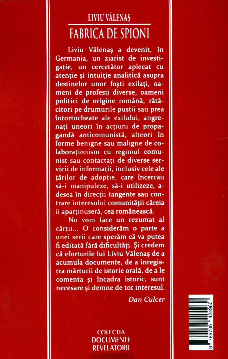 Liviu Valenaş a devenit, în Germania, un ziarist de investigaţie, un cercetător aplecat cu atenţie şi intuiţie analitică asupra destinelor unor foşti exilaţi, oameni de profesii diverse, oameni politici de origine română, rătăcitori pe drumurile pustii sau prea întortocheate ale exilului, angrenaţi uneori în acţiuni de propagandă anticomunistă, alteori în forme benigne sau maligne de colaboraţionism cu regimul comunist sau contactaţi de diverse servicii de informaţii, inclusiv cele ale ţărilor de adopţie, care încercau să-i manipuleze, să-i utilizeze, adesea în direcţii tangente sau contrare interesului comunităţii căreia aparţinuseră, cea românească.