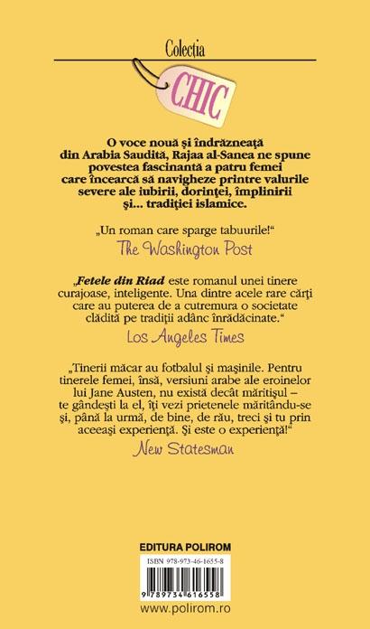 Patru prietene din familii saudite, reprezentante ale unei clase sociale instarite si educate, isi urmeaza diversele cursuri la facultati din Riad, Chicago si San Francisco, tinind legatura intre ele si cu baietii din vietile lor pe chat room-uri sau la telefoanele mobile. Cu toata tehno­logia moderna, viata celor patru este profund marcata de traditii stravechi ce sanctioneaza orice libertati moderne. Logodnicul lui Sadeem o paraseste dupa ce face sex cu el. Sotul lui Gamrah divorteaza de ea, dupa ce ea descopera ca acesta are o aventura. Michelle si Faisal se adora, dar el renunta la ea, la cererea propriei familii. Politia ares­teaza un cuplu intr-o cafenea, dar majoritatea familiilor nu au nevoie de ajutorul autoritatilor ca sa intervina fara menajamente in vietile fiicelor si surorilor lor. Tradus din limba araba in engleza de autoare, acest roman de debut a fost initial interzis in Arabia Saudita. Rajaa al-Sanea spune aceasta poveste in cunostinta de cauza si o completeaza cu contradictiile si tradarile care par sa defineasca viata de zi cu zi. Este vorba despre un chick-lit in toata puterea cuvintului, insa imaginati-va genul de drame, oricit de emotionante, care se petrec printre tinerii din Occident, si tran­spuneti-le intr-un mediu in care daca o femeie este vazuta cu chipul descoperit in public are toate sansele sa declanseze un scandal, nu poate avea intilniri amoroase decit sub ochii rudelor, iar pentru un barbat, sa o curteze inseamna sa se tina la kilometri distanta fara sa o scape o clipa din ochi!