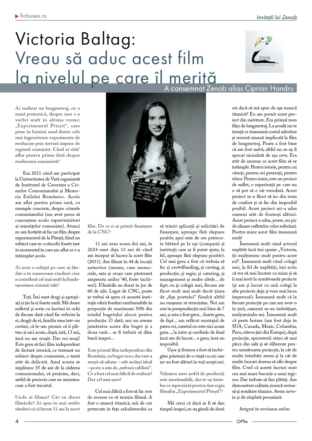 Victoria Baltag a făcut filmul Experimentul Pitești. Mai mult de un deceniu a lucrat la acest film. Eroic, pasional. Zenob