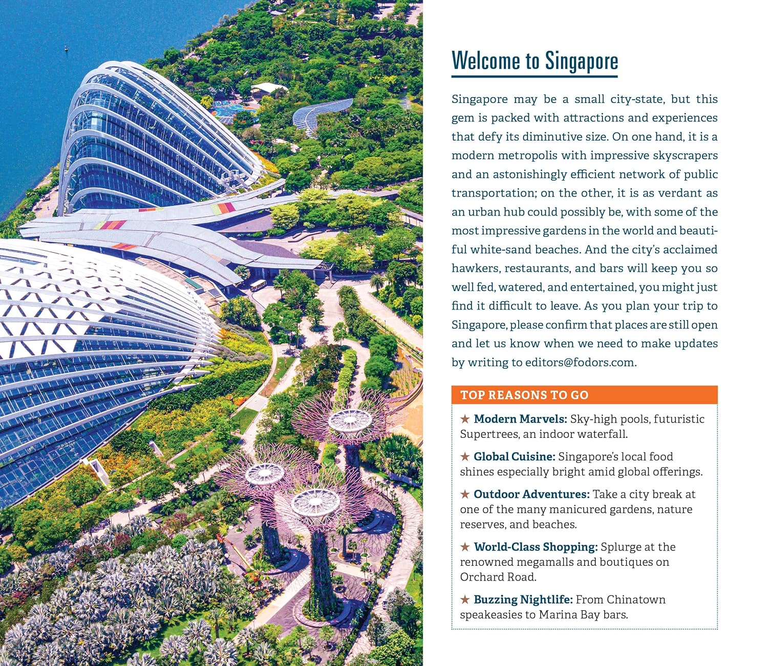 Whether you want to explore the Gardens by the Bay, hit the beaches of Sentosa Island, or shop on Orchard Road, the local Fodor's travel experts in Singapore are here to help! Fodor's In Focus Singapore guidebook is packed with maps, carefully curated recommendations, and everything else you need to simplify your trip-planning process and make the most of your time.
