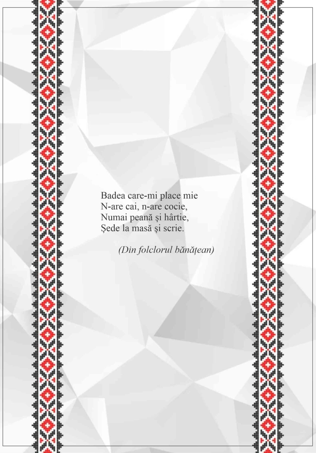 După cinci decenii, când nici unul din informatorii mei nu mai era în viață, am regăsit vechile însemnări în casa părintească de la Cenad, le-am recitit cu emoție și îngândurare și am decis să le fac cunoscute unui public extins. Am structurat întregul material după criteriul genurilor literare, punând la început creațiile în versuri și în partea a doua creațiile în proză.