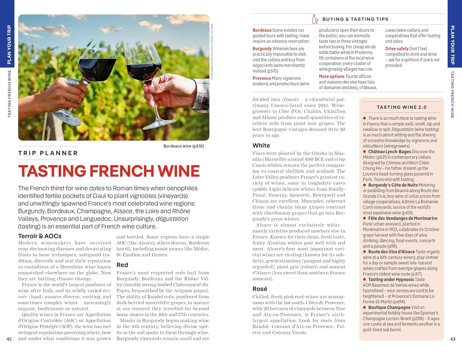 Special features on wine tasting explained, hiking and skiing guide, Paris walking tours