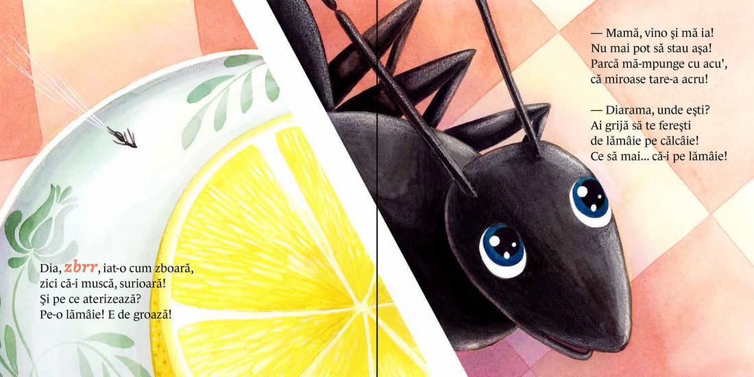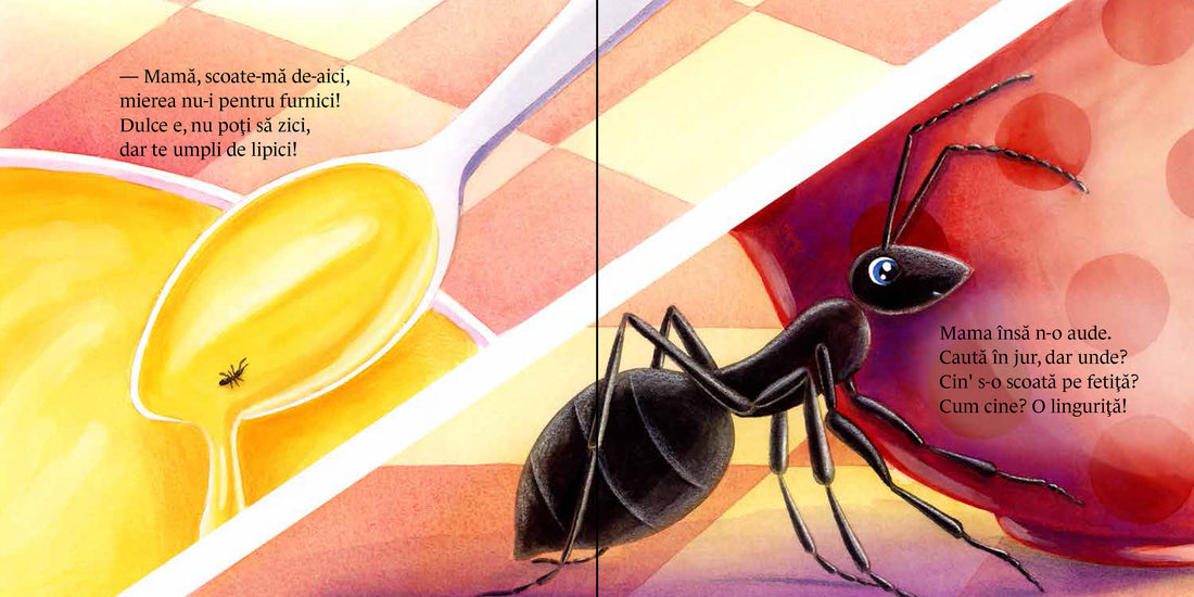 Din borcan pe linguriță, furnicuța se distrează grozav, până aterizează pe... o felie de lămâie!