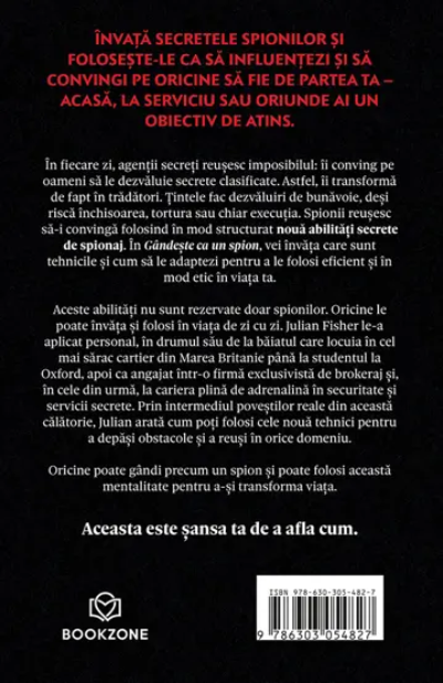 Aceste abilități nu sunt rezervate doar spionilor. Oricine poate gândi precum un spion și poate folosi această mentalitate pentru a-și transforma viața de zi cu zi. Aceasta este șansa ta de a afla cum.