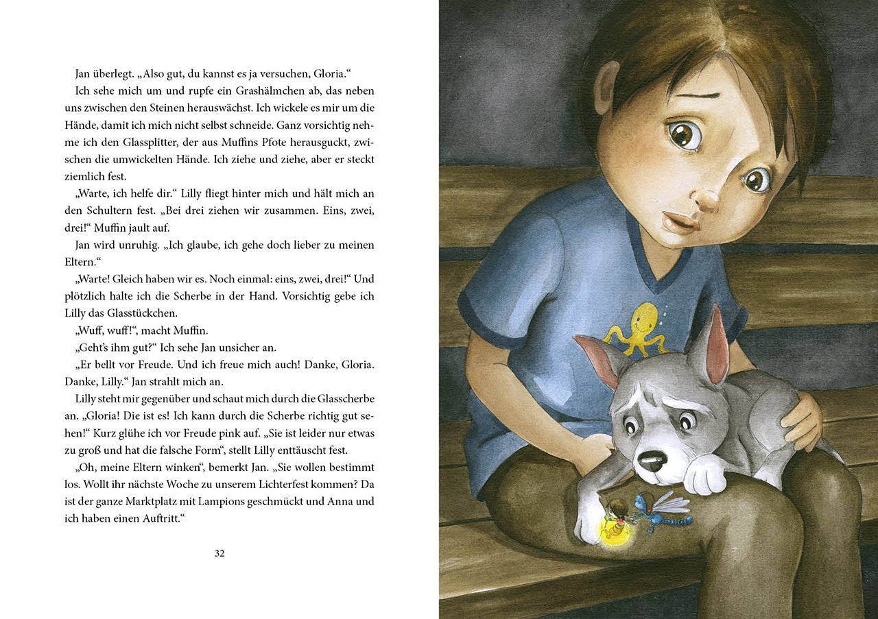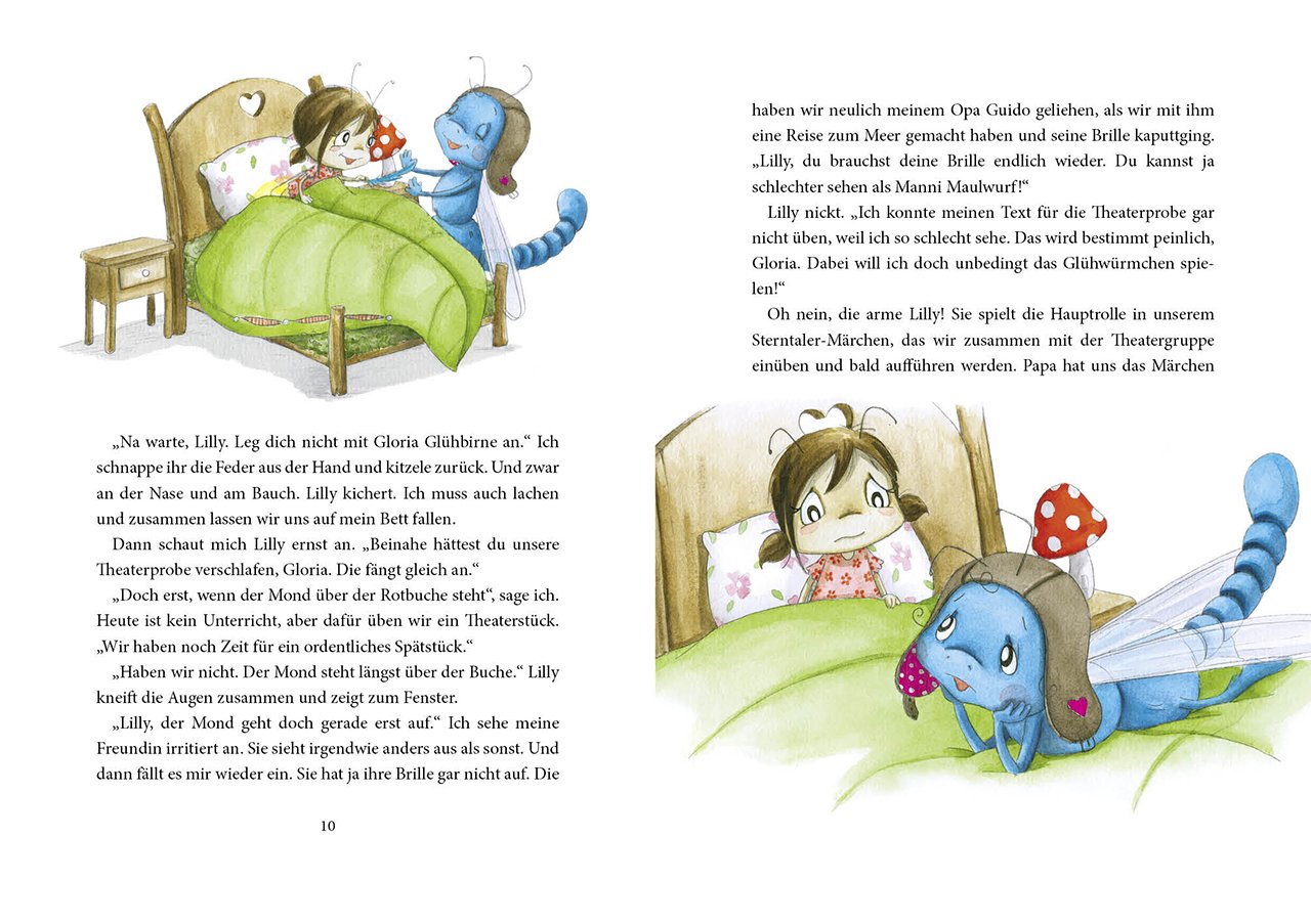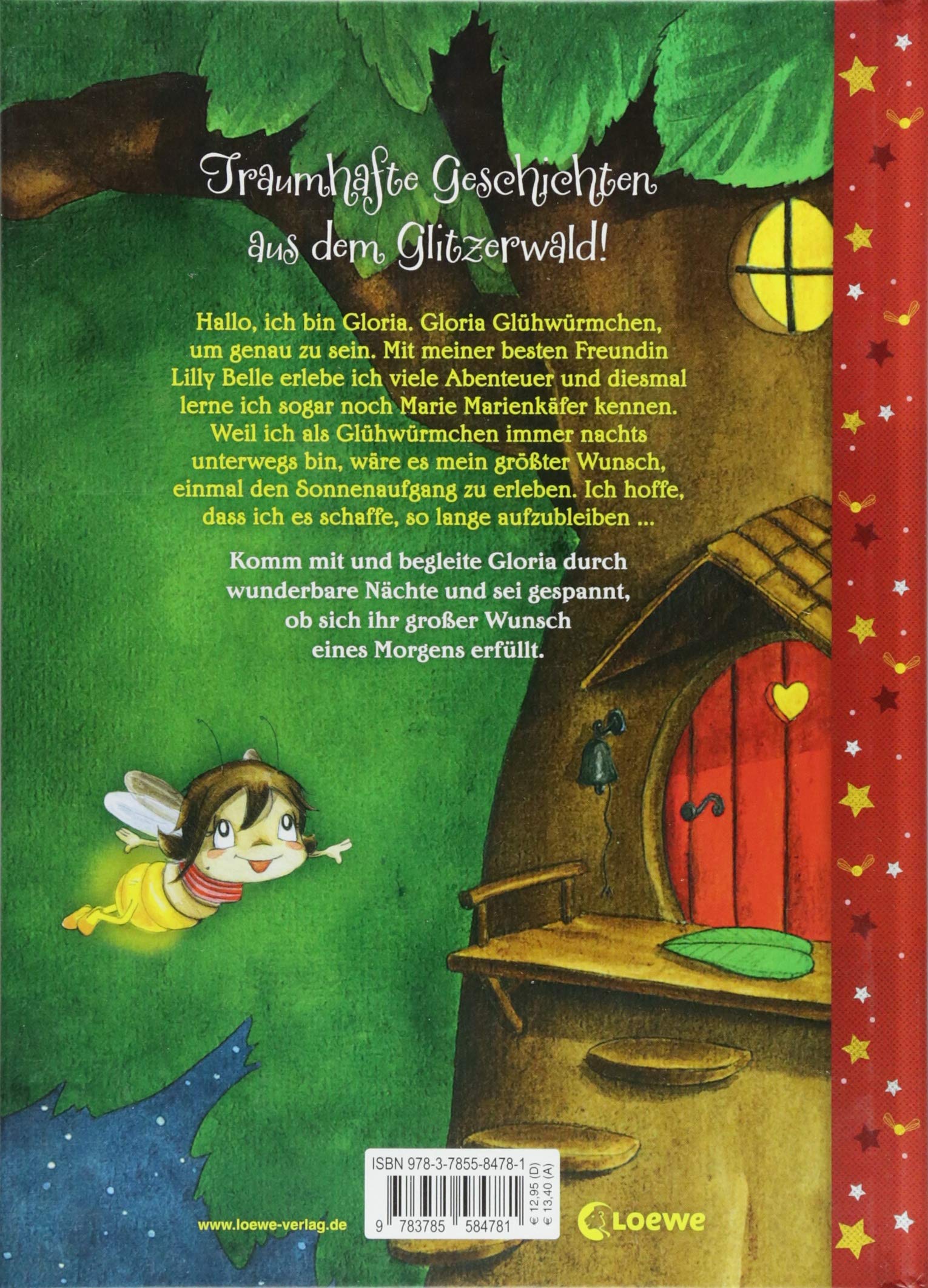 Hallo, ich bin Gloria. Gloria Glühwürmchen, um genau zu sein. Mit meiner besten Freundin Lilly Belle erlebe ich viele Abenteuer und diesmal lerne ich sogar noch Marie Marienkäfer kennen. Weil ich als Glühwürmchen immer nachts unterwegs bin, wäre es mein größter Wunsch, einmal den Sonnenaufgang zu erleben. Ich hoffe, dass ich es schaffe, so lange aufzubleiben ...