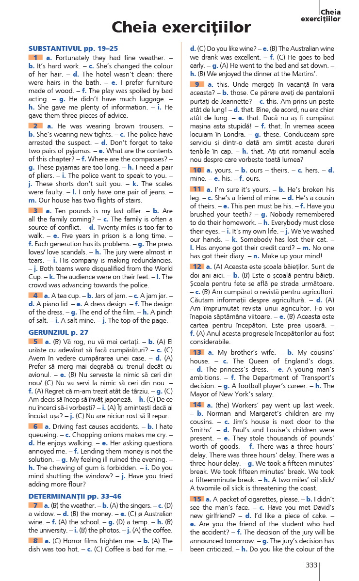 Aceste două părţi includ fiecare numeroase exerciţii, însoţite de cheia exerciţiilor, pentru a fixa cunoştinţele dobândite.
