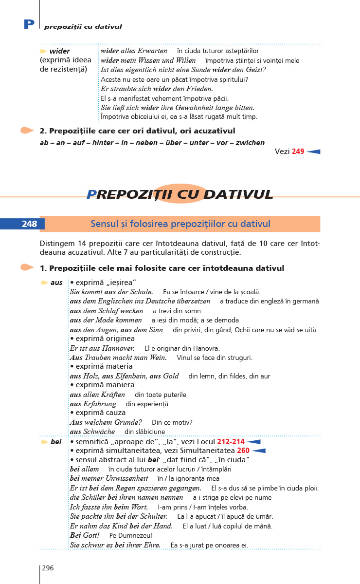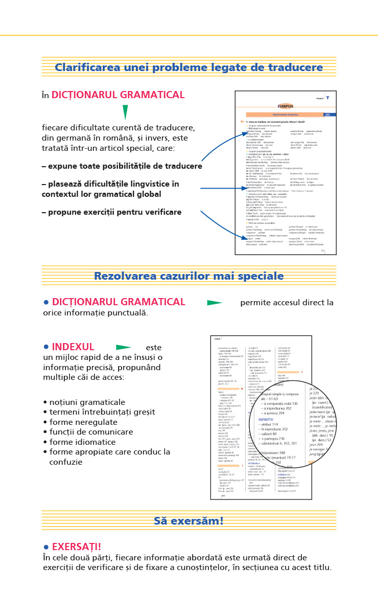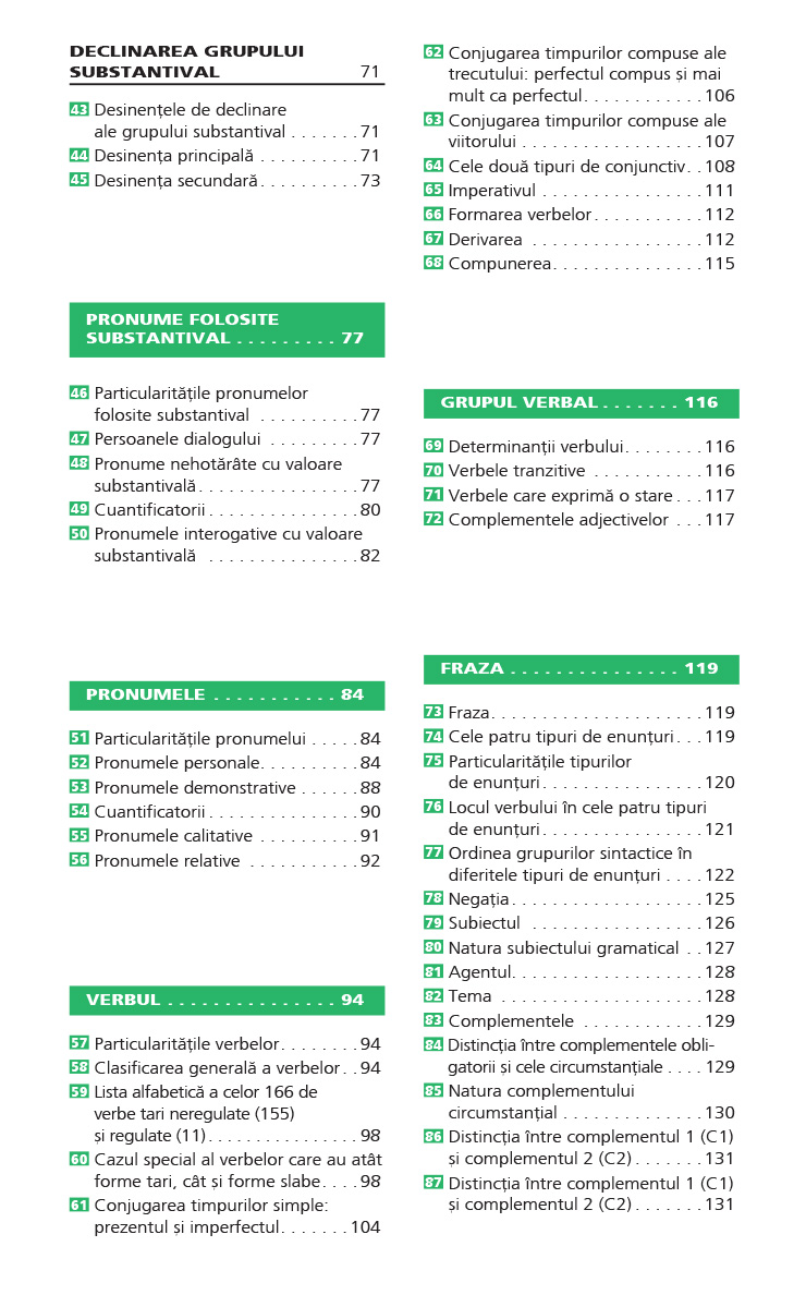 Capitolul consacrat sintaxei a fost redus la minimum. Considerăm că principiile de bază sunt suficiente pentru o înţelegere a logicii sistemului gramatical. Teoria nu îngreunează înţelegerea sau memorarea acestuia, ci dă o coerenţă indispensabilă acestor procese: nu asimilăm în mod corect decât ceea ce am înţeles mai întâi. Astfel, nu am folosit neologisme, ci ne-am străduit să folosim sensul de bază al cuvintelor. De exemplu, direct şi indirect înseamnă: construit cu sau fără prepoziţie.