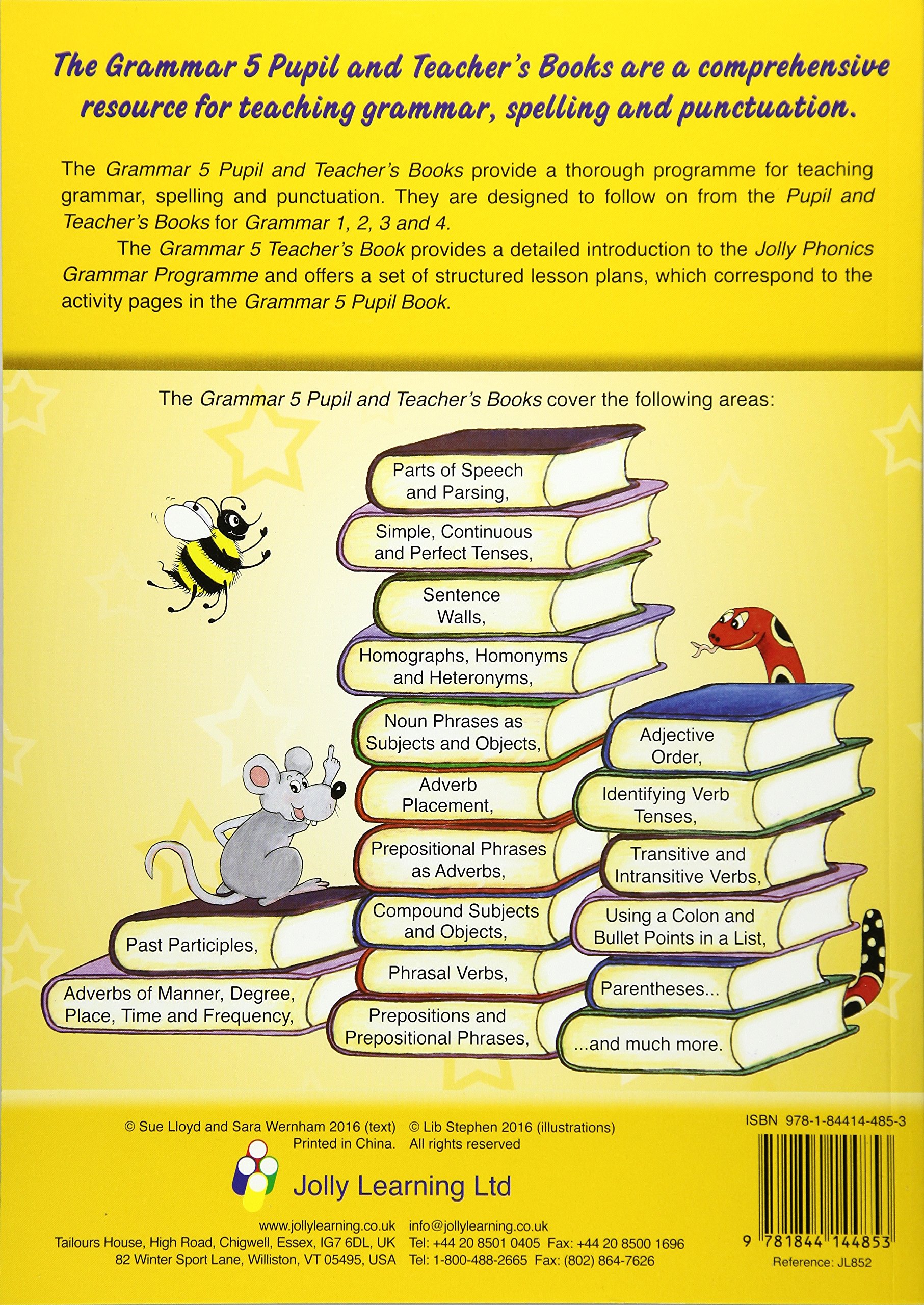Designed to accompany the Grammar 5 Pupil Book, the Grammar 5 Teacher's Book provides detailed lesson guidance for teaching spelling and grammar to children and folllows on from the Grammar 4 Teacher's Book. The structured lesson guides in the Grammar 5 Teacher's Book correspond to the activity pages in the Grammar 5 Pupil Book, and provide material for teaching 1 Spelling and 1 Grammar/Punctuation lesson per week for a year. Descriptions of grammar points are given and described in depth. Plenty of teaching ideas and extension activities are also included.