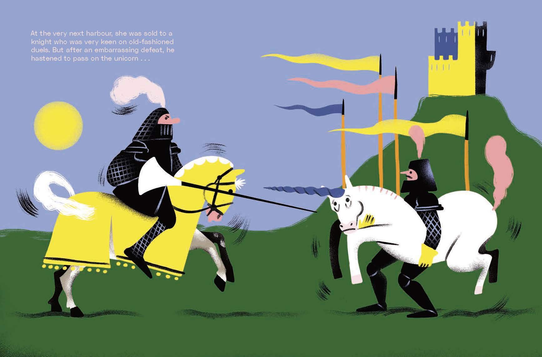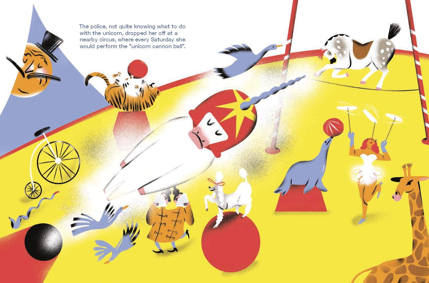 A beautiful and riotous page-turner about a solitary unicorn who is taken from her home, and whose daring escapades and international fame can't compare to the joys of home. Follow the lively course this very game unicorn takes in a vibrant and playful journey to find happiness.