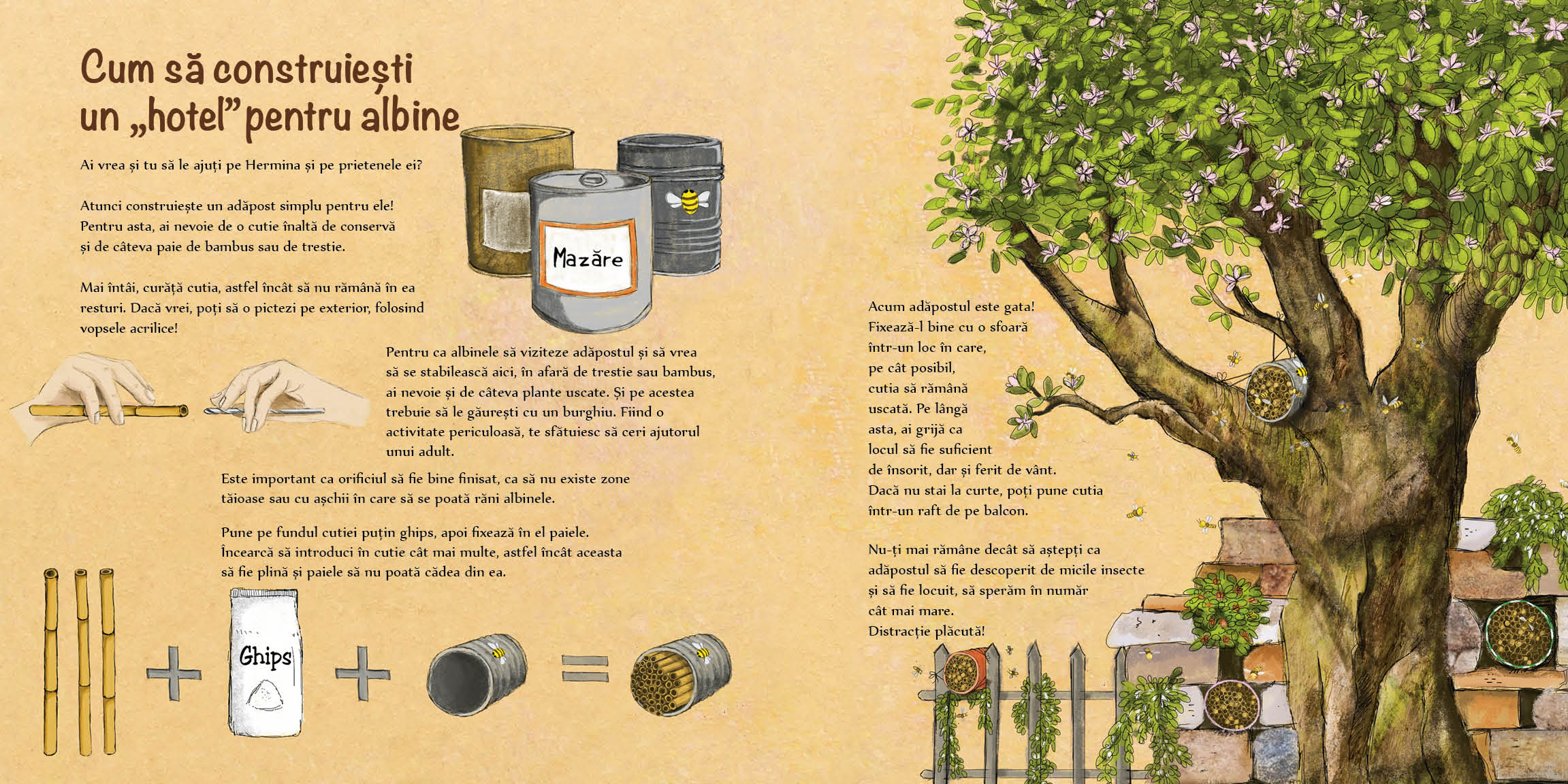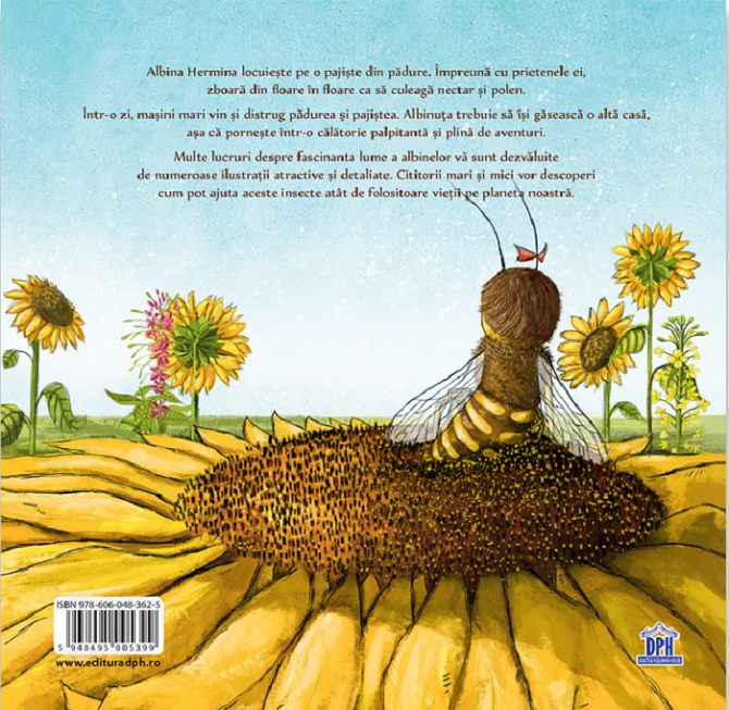 Cartea despre micuța albină Hermina este o carte cu imagini narative în care este povestită aventura micuței albinuțe. Înainte ca povestea să înceapă, micii cititori învață câte ceva despre familia de albine din care face parte Hermina – o specie de albine sălbatice. Pe o pagină față-verso există în mijloc un desen realist al unei albine din această specie, iar în jurul ei sunt secțiuni individuale de text cu informații utile și interesante. Aici, copiii învață multe despre caracteristicile fizice și comportamentul tipic al acestei specii de albine sălbatice.