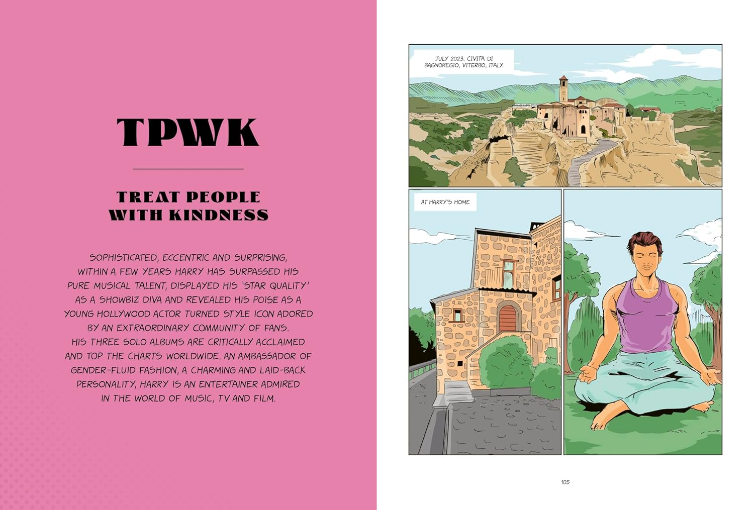 This wonderfully illustrated graphic biography focuses on the values that makes Harry so inspirational to so many people. He fearlessly showcases these strengths through his music, performances and fashion - from the Vogue cover to showing his vulnerability on stage. Brought to life with breathtaking immersive illustrations, this book celebrates the inspiring moments - both public and private - that have transformed this boy-next-door into a cultural phenomenon.
