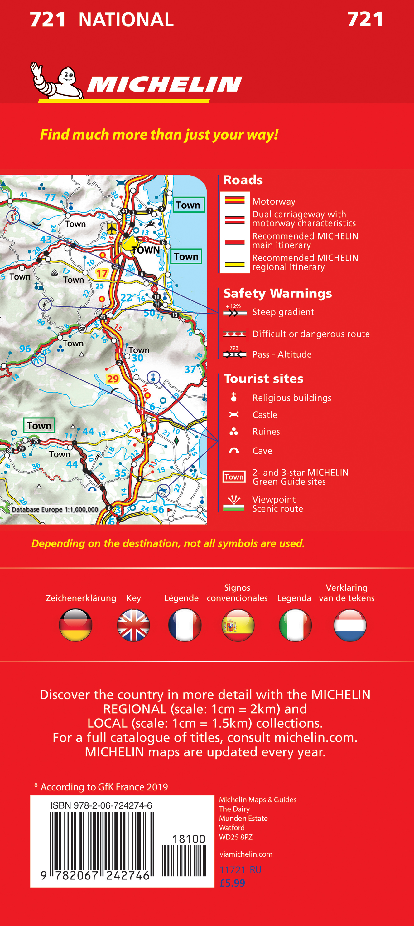Actualizată anual, Harta Franţa 2020 vă va oferi o imagine de ansamblu a călătoriei dvs. datorită scării 1:1.000.000. Harta vă va ajuta să planificați cu ușurință călătoria în Franţa datorită legendei cuprinzătoare, a indexului complet de nume, precum și a designului grafic inteligent legat de raportul timp-distanţă. Informațiile despre rute vă vor ajuta să călătoriţi în siguranță în toate circumstanțele. În plus, harta națională Michelin Europa are ca referinţă celebrul Ghid Verde Michelin, prezentând astfel şi destinațiile turistice care merită vizitate!