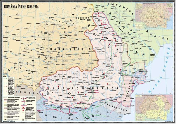 Harta ilustreză evoluţia României moderne până la Primul Război Mondial .